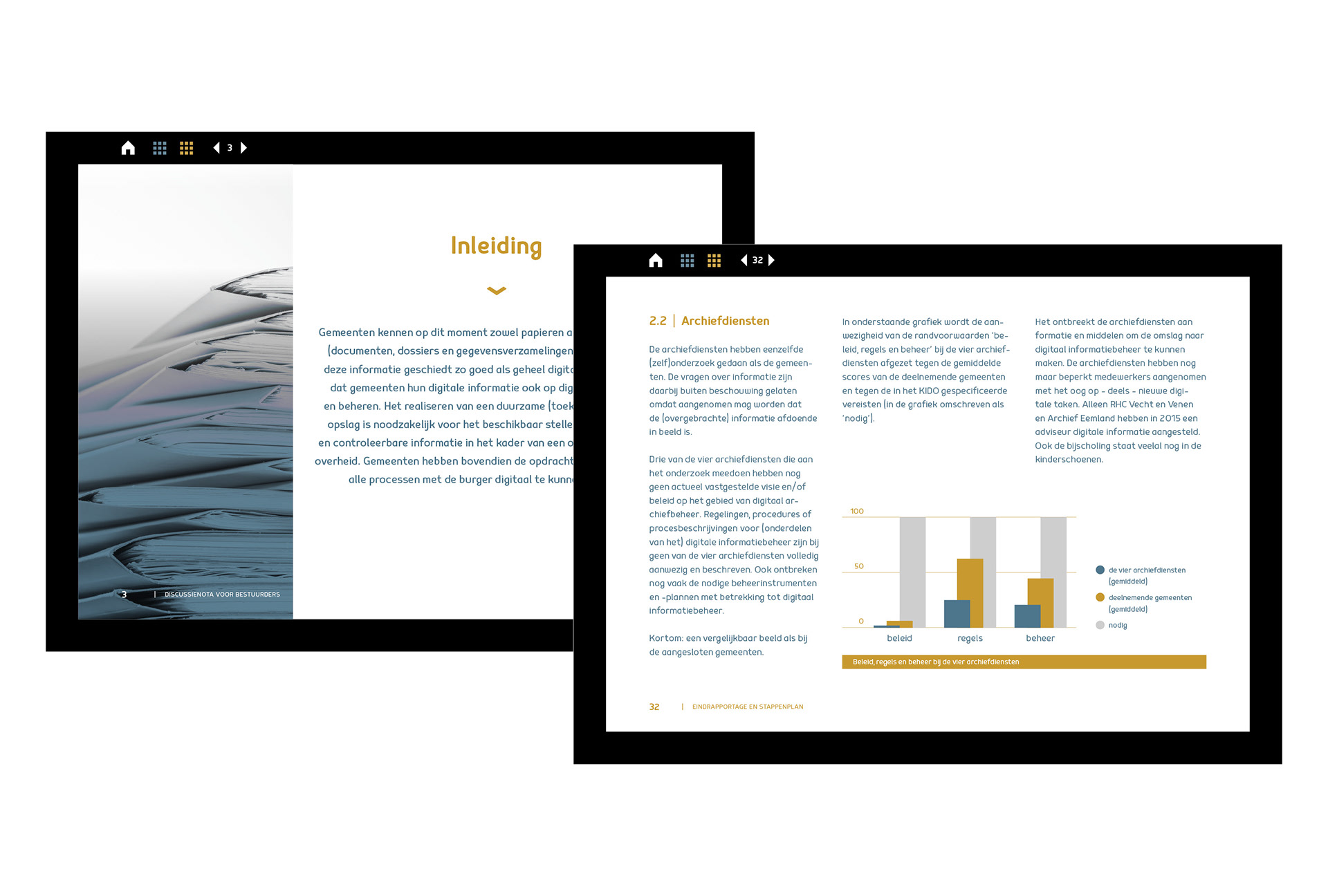 Ontwikkeling van logo en identiteit voor het Project E-Depot. Een onderzoek naar het duurzaam toegankelijk maken van digitale overheidsinformatie. Vormgeving van discussienota en eindrapportage, opgeleverd als interactieve pdf.